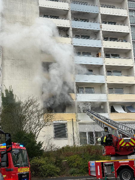 aufgrund einer ausgelösten Brandmeldeanlage in die Sudetenstraße alarmiert. Bereits wenige Minuten später, gegen 14:00 Uhr, meldeten Passanten der Leitstelle ein bestätigtes Feuer. Daraufhin wurde das Einsatzstichwort auf „F2 -Zimmerbrand" erhöht und neben dem Rettungsdienst auch der 1. Zug der Freiwilligen Feuerwehr Marburg-Mitte sowie die Freiwillige Feuerwehr Cappel nachalarmiert.